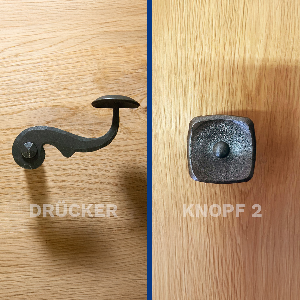 Handgeschmiedeter rustikaler Drücker, vernietet, Drückerknauf gewölbt
