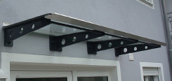 Stahl- Glas-Konstruktion mit Edelstahl-Ablaufrinne.